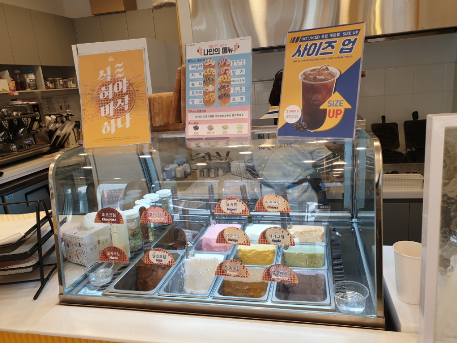 와플에 토핑 및 크림도 더 추가할 수 있다고 하니